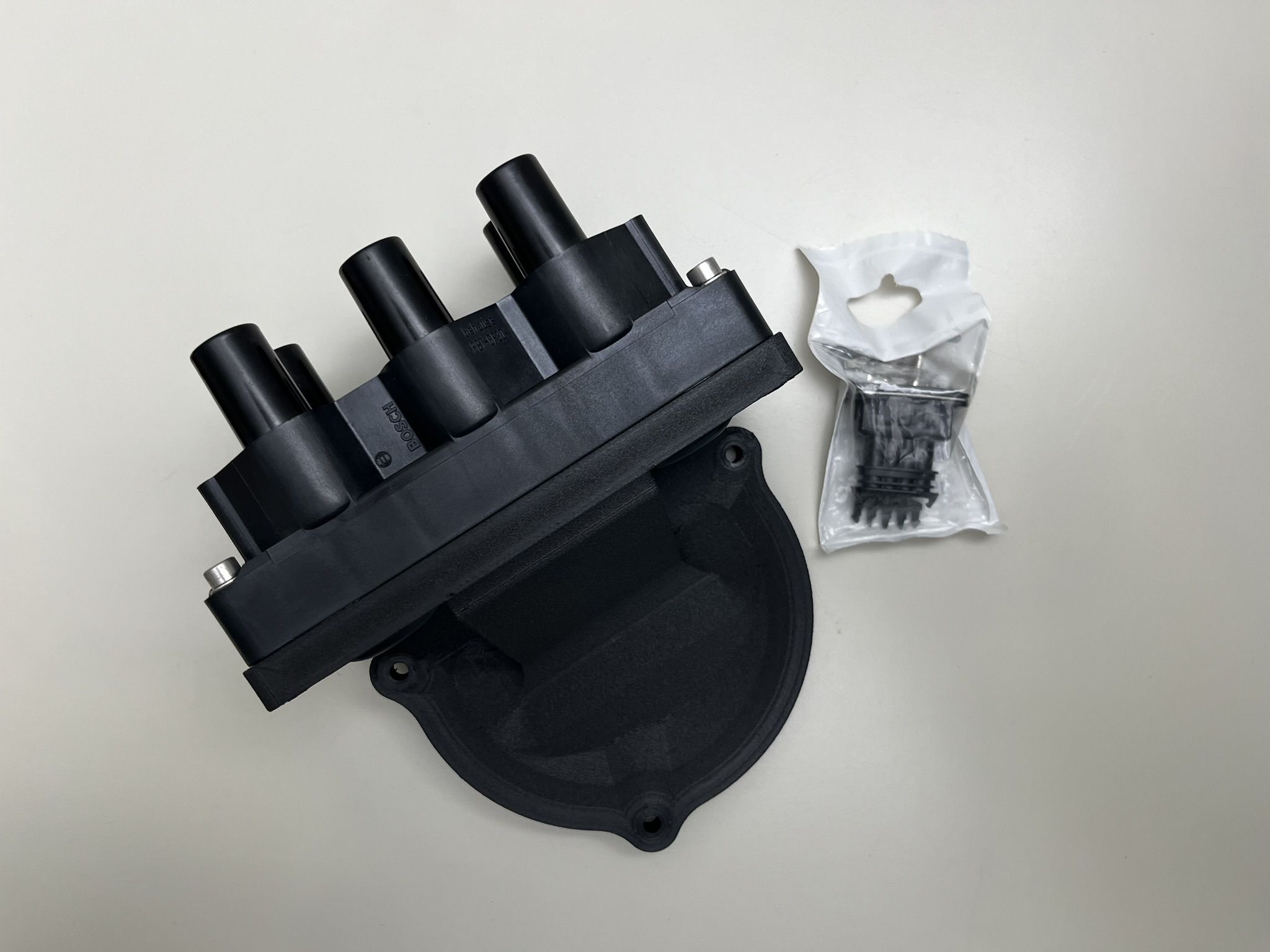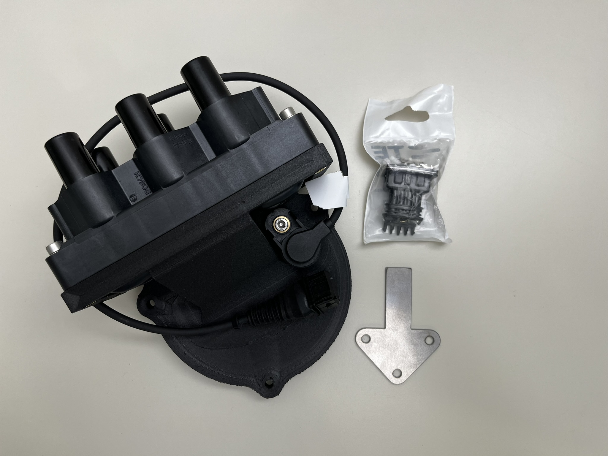 3D printed mounting bracket for wasted spark and sequential injection on BMW M30/M20 engine.