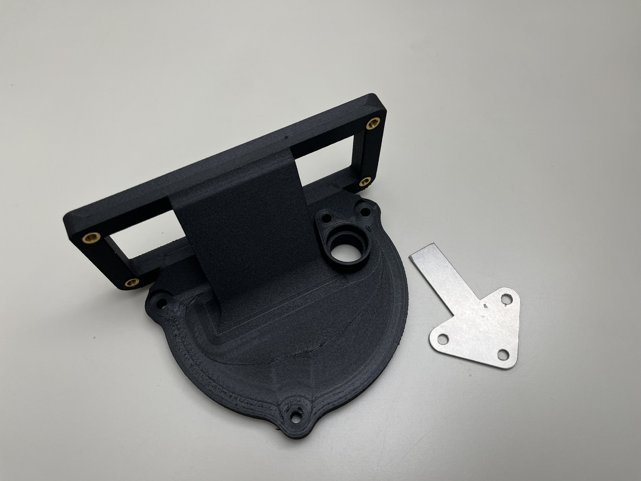 Made form carbon fiber reinforced nylon. Withstands up to 194 degrees celsius.